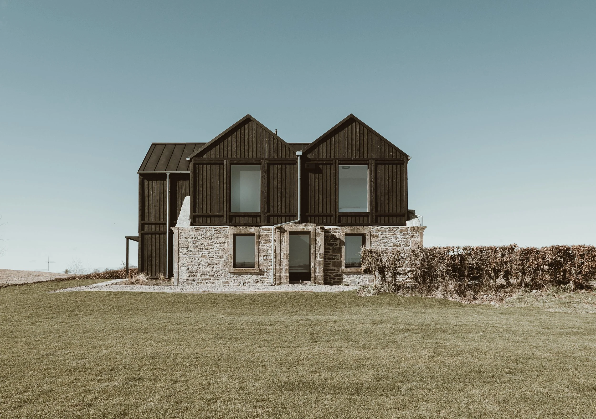 A new-build family house set within the footprint of a historic stone ruin, located within the wilds of Scotland.