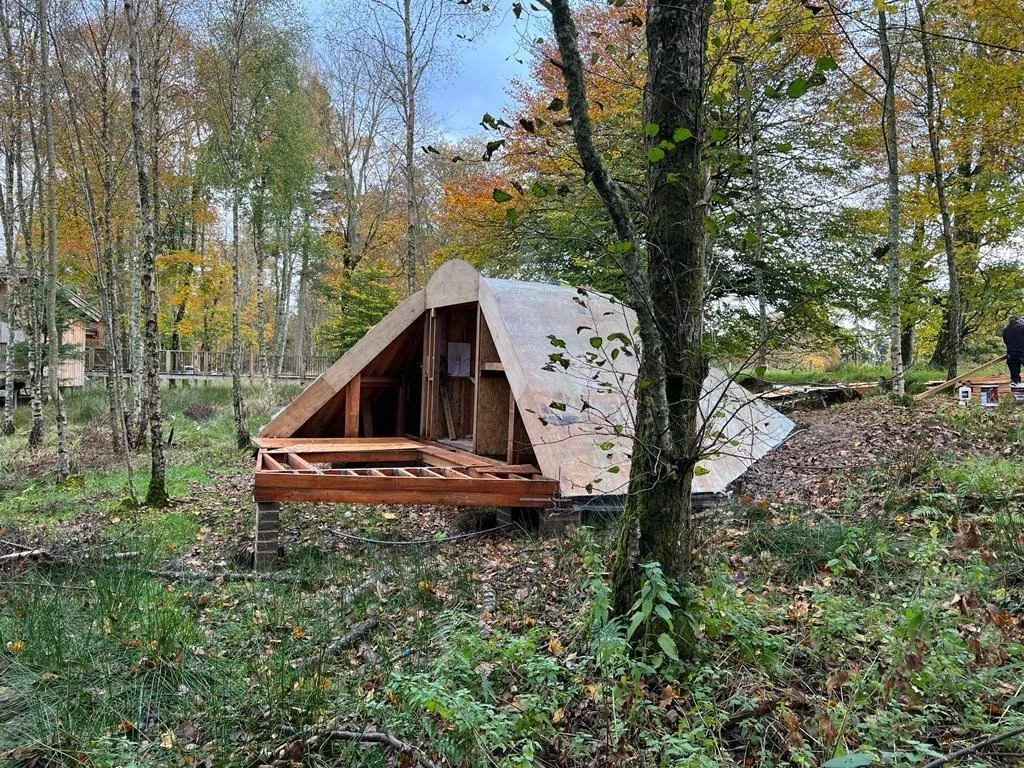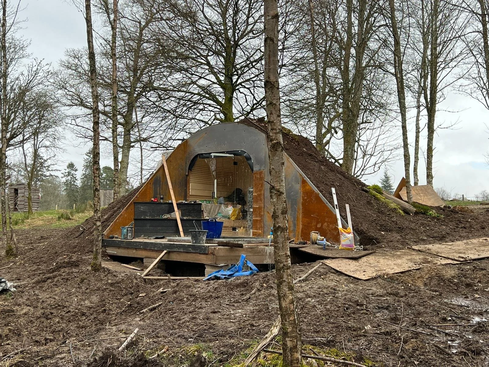 A bespoke sauna and plunge pool nestled with an area of mixed woodland, surrounded by the luxury retreat of The Treehouses at Lanrick, Scotland.
